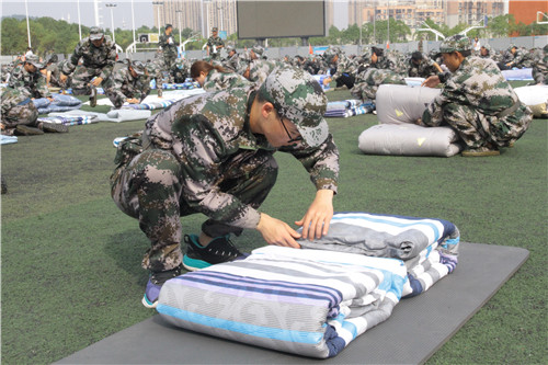 为培养学生良好的生活习惯,提高学生整理内务水平,加强军训训练效果,10月27日下午,我校开展2020级新生叠被子大赛,各连队分别派出10名学生参与大赛。