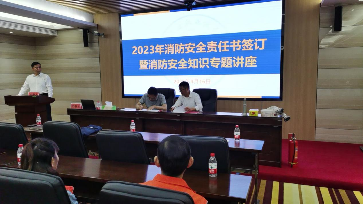 安全稳定是学校事业发展的前提和基础。4月16日,为了进一步落实省教育厅关于安全生产工作的决策部署,全面防范化解校园安全风险,进一步强化学校物业、保安、宿管、食堂工作人员安全意识、提升安全素质。以2023年“国家安全教育日”活动为契机,学校组织与保利天创物业有限公司签订2023年《消防安全责任书》仪式和消防安全知识讲座。