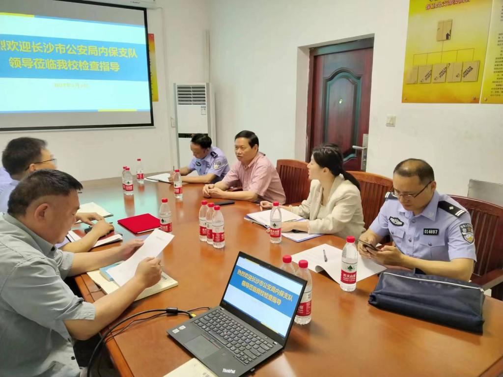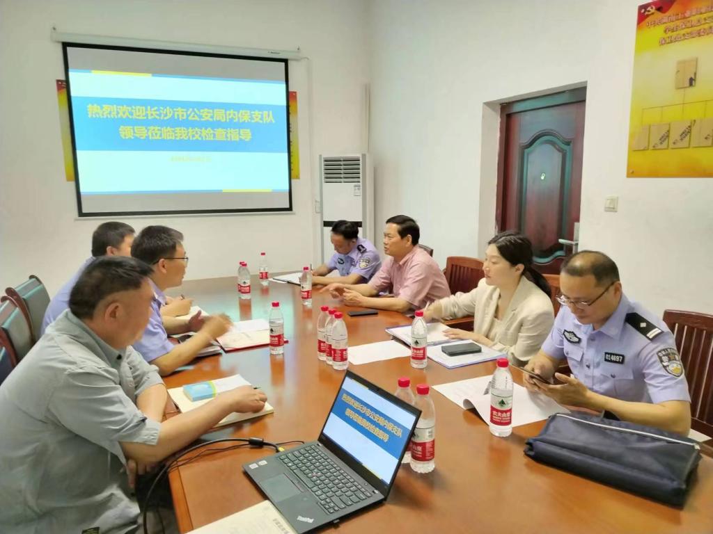 5月5日上午,长沙市公安局内保支队胡福德副书记、谭赟警官,岳麓区公安局张队长等领导一行来校检查指导安全稳定工作。我校保卫部部长彭伟、保卫部副部长张长久及科室负责同志参与会议并陪同检查。