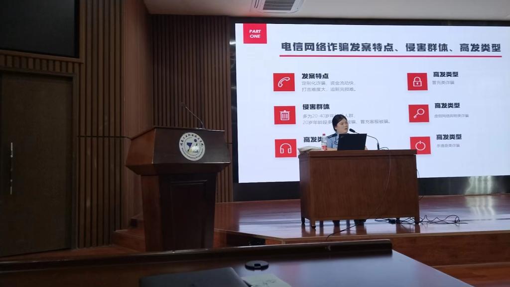 9月22日,学校面向2023级新生举办反电诈专题报告会,湘江新区王紫威警官担任主讲。修涛围绕电信诈骗的总体形势、社会影响、常见类型、惯用手段以及防范措施等方面展开介绍,通过讲解“冒充熟人”、“刷单返利”等典型案例,引导同学们做到“不听、不信、不转帐”、“多看、多思、多核实”,教育学生在做到有效防范电信网络诈骗的同时,坚决不参与“两卡倒卖”等违法犯罪活动。报告会后,含浦派出所张风华队长向与会人员通报了近期电信诈骗相关情况,指导学生遇到可疑情况时如何报警处置。