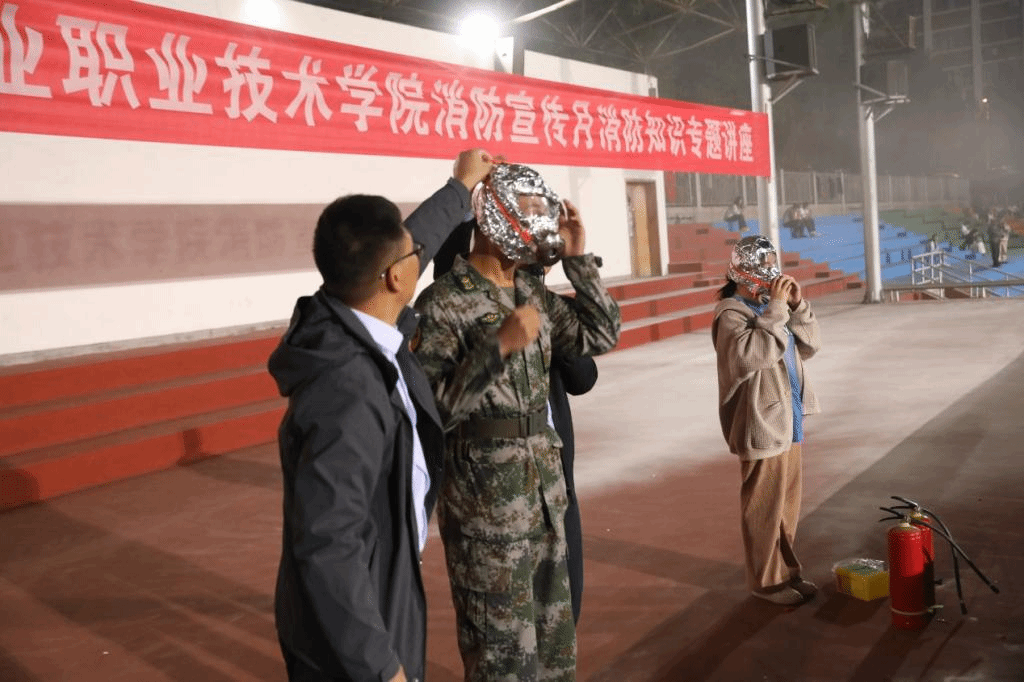 专家对参演学生进行逃生自救培训和消防器材实操讲解