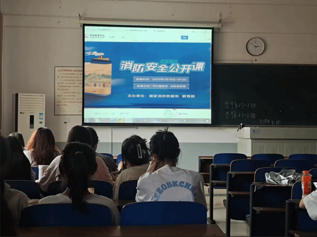 为进一步增强师生消防安全观念,普及消防安全知识,提升逃生自救技能。3月18日,学校组织师生员工观看由教育部、国家消防救援局联合举办的“2025年春季高校消防安全公开课”直播活动。