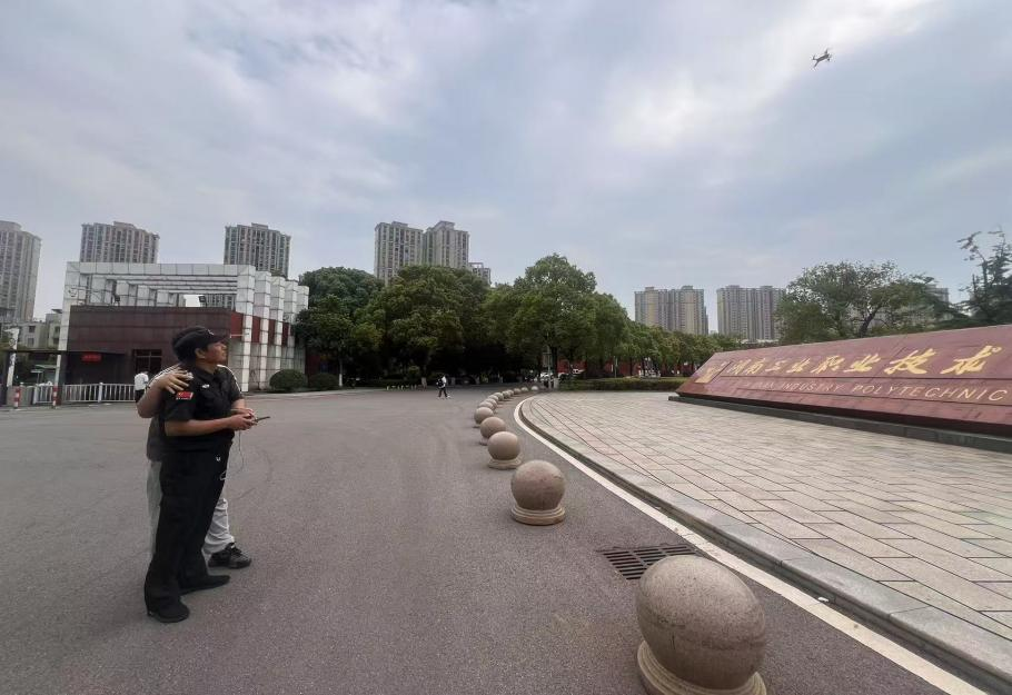每天清晨,无人机协会成员与保卫部工作人员便在指定区域集结,完成设备调试与航线规划。随着螺旋桨轰鸣声响起,无人机迅速升空,对教学楼、学生宿舍、图书馆及校园围墙等重点区域进行智能巡查。通过高清摄像头实时回传画面,一旦发现人员聚集、设施损坏等异常情况,操控人员可第一时间联动保卫部处置。
