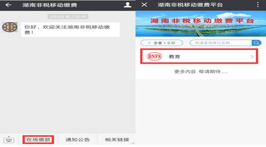 3.系统入口:打开手机微信,扫一扫下图微信公众号,或者搜索“湖南非税移动缴费”公众号关注。进入公众号后点击“在线缴款”—》“教育”—》“电子pg游戏平台下载”。