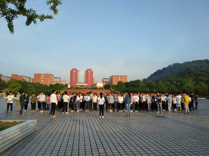 伴随着初升的太阳,培训班全体学员们从新纪元广场出发,途径学校办公楼、鹤鸣山、第一教学楼、图书馆、第二教学楼等地,最后又回到新纪元广场。班助、班长以及各位副班们认真督察队形、保障活动的秩序与安全。