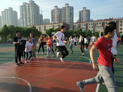 阳光和煦,微风习习,本着“友谊第一,比赛第二”的原则,集合后排列整齐的两班学员在班长及班助带领下来到篮球场开展集体跳长绳活动。