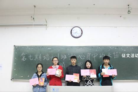 为了纪念红军长征胜利80周年,增强培训班成员的民族自尊心、自信心和自豪感,继承革命的优良传统和优秀品格,院党校第七期发展对象培训班开展以“我心目中的长征”主题的征文活动。并于10月28日在1212教室举行优秀征文颁奖仪式。