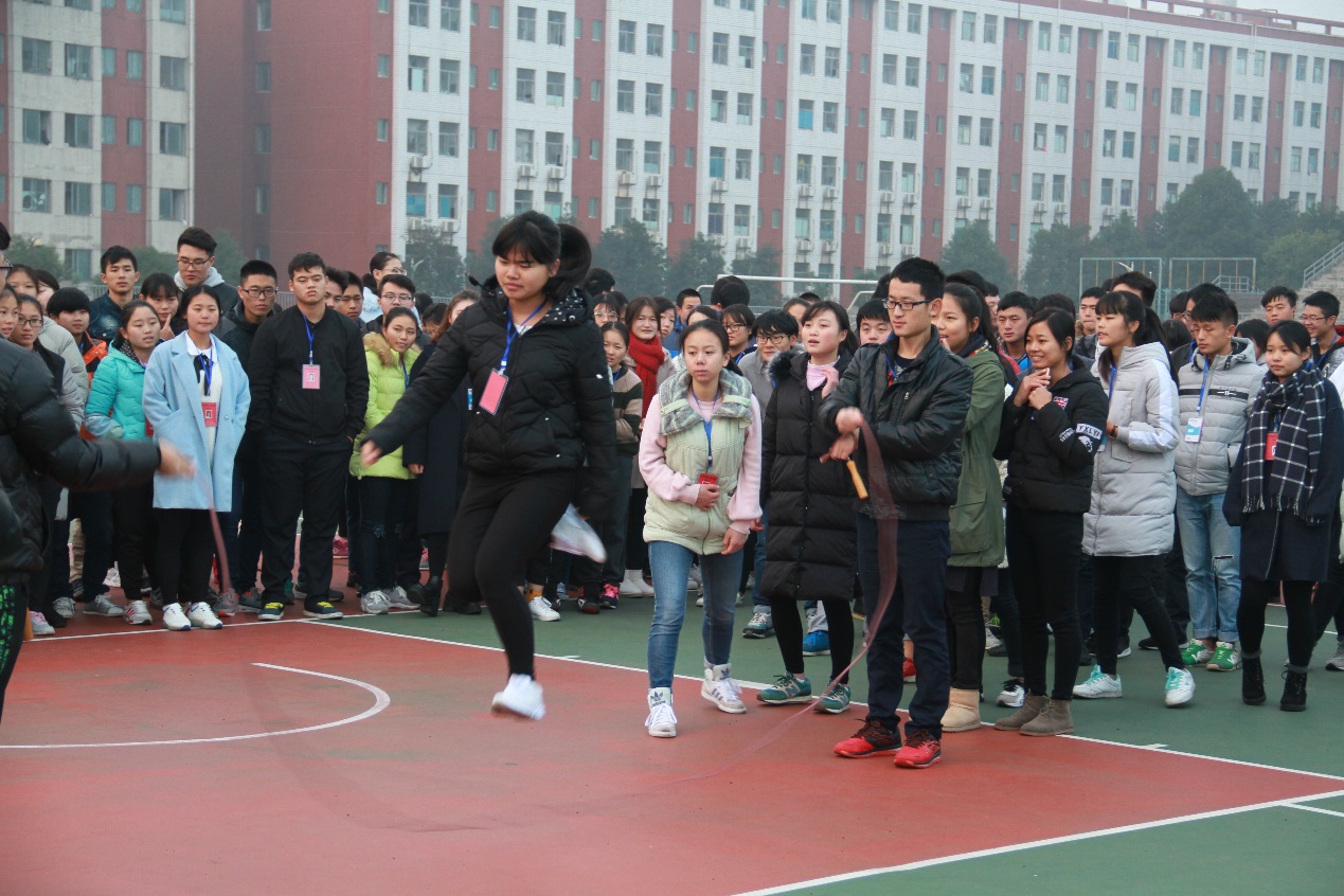跳绳赛:不需要太强壮的身体,需要的是技巧和熟练的衔接,需要的是更细致的团队配合,女生的英姿在赛场上得到更多的展现。