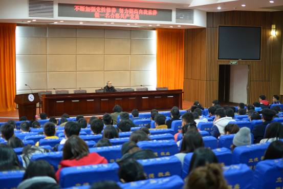 2016年12月27日下午,学院党委委员、副院长邓建国就“不断加强党性修养、努力提高自我素养、做一名合格党员”这一主题在图书馆学术报告厅讲党课,学院各系(院)学生支部书记和学生党员近300人到场聆听,学院党校培训班班主任罗德贤老师主持党课。