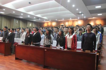 典礼在庄严肃穆的国歌声拉开帷幕,刘琼做动员讲话。她指出,把作为党员发展对象的同学们集中起来培训是为了贯彻从严治党的精神,认真落实“坚持标准,保证质量,改善结构,慎重发展”的方针,严把入关口。她希望新学员们通过培训班的学习,了解世情、国情、党情、校情,了解党纪、党规,更加明确共产党人应有的理想信念,不仅在行动上入党,更要在思想上入党。