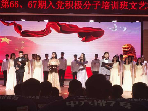 据悉,这是第66、67期入党积极分子的结业汇报表演。党校既是学习党史、加强党性教育的平台,又是展示自我能力和素质的平台。在第66、67期入党积极分子培训班中,学员们不仅学习了宝贵的知识,收获珍贵的友谊,同时展现了多才多艺的一面。