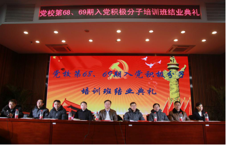 1月5日中午,党校第68、69期入党积极分子培训班结业典礼在我校图书馆多功能报告厅举行。学校党委副书记陈超、党校副校长陈方、各二级学院党支部书记等及培训班全体成员参加了本次结业典礼。典礼由培训班班主任李蕙主持。