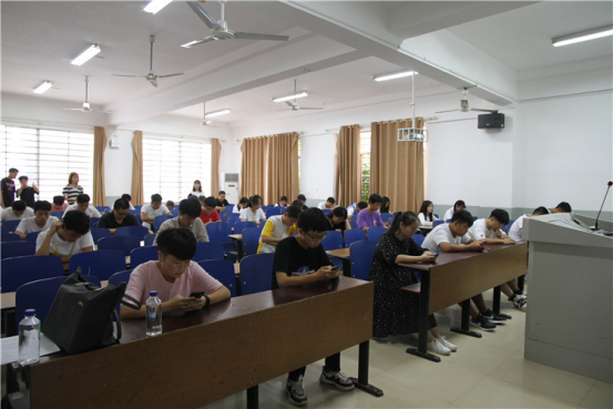 本次比赛限时一小时,参赛学员隔位就坐,利用自己的手机在学习强国APP上进行多次挑战答题,每位同学只有1次答错的机会,如果答错2道题以上将重新开始新一轮答题,最终选取答对题数最多的成绩作为该学员在本次决赛的最终成绩。相关工作人员现场进行成绩记录与监督。