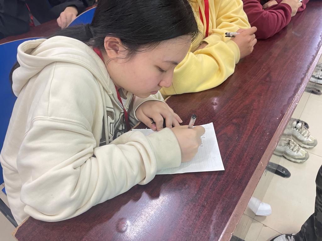本次专题学习会由班长、副班长带队分成四个小组进行,负责人通过PPT讲解引入活动主题,介绍活动内容,提出学习要求,最后各小组组长将默写纸随机放在组员的桌面上,计时10分钟,小组成员按顺序在纸上接力默写出相应的步骤。