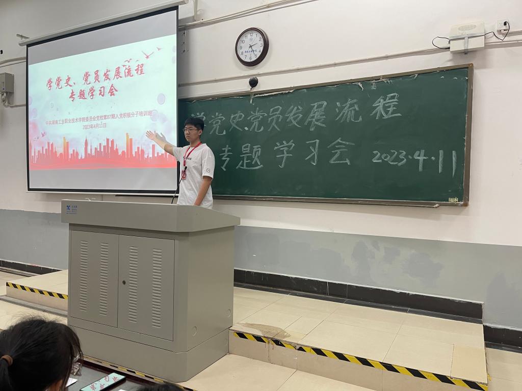 为加强入党积极分子对党员发展流程有更清晰的认识与了解,端正其入党动机,党校第87期入党积极分子培训班于4月11日下午开展学党史、党员发展流程专题学习会,使同学们清楚的了解严格履行发展党员程序是党组织做好发展党员工作的重要环节,是对要求入党的同志所进行的一次严格的政治审查和实际的党员标准教育。