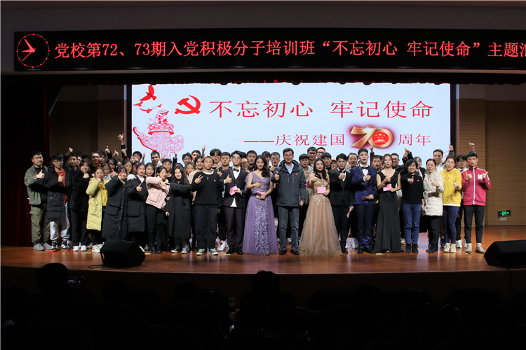 主题汇报演出是党校培训班的传统实践活动,为促进学员之间交流,加强学员团结奋斗意识,本次演出节目编排更改了往常各二级学院独自完成节目的形式,由全体二级学院学员共同完成全部节目编排。本次汇演让学员充分了解到新中国成立70周年的发展历程与繁荣富强背后的艰辛,激发了学员的奋斗意识以及坚定了入党信念,展现了学员们良好的精神风貌。