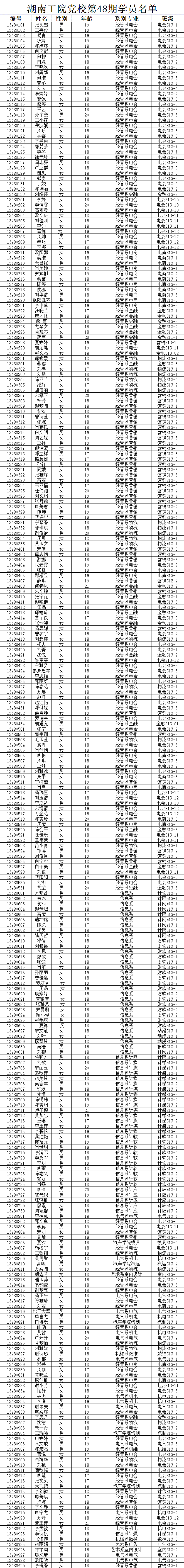 湖南工院党校第四十八期学员名单