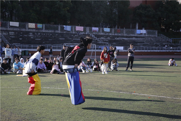 本次活动内容丰富,趣味性和合作性强,包含巨人脚步、袋鼠接力跳、拔河、跳长绳等有趣的项目。巨人脚步项目考验着学员们的团结与合作潜力,选手们整齐有力的口号声、观众的呐喊声和欢呼声,将青春的快乐尽情绽放!袋鼠接力跳项目的比赛异常激烈,参赛学员们一个个精神抖擞,队友们都随着比赛的进程加油鼓励,场面十分热闹。拔河比赛使运动会达到了高潮,啦啦队的欢呼一浪高过一浪。最后的跳长绳中,哨声一响,纤绳摇动,舞出风声,学员们像空中跳跃的精灵,展现出自己的英姿。