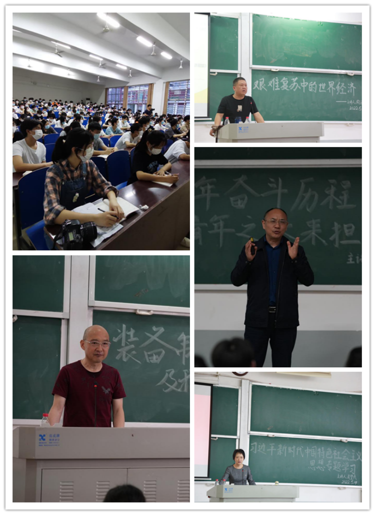 我校纪检监察处副处长涂岭主讲题为《全面从严治党专题学习》的专题党课。他勉励学员们要积极主动学习党纪法规,树牢红线意识、底线思维,用中国共产党党员的标准严格要求自己。我校教务处处长彭跃湘主讲题为《装备制造业的发展及我院的教学改革》的专题党课。他讲解了湖南“强省会”战略,使学员们更详细地了解装备制造业发展,增强了他们爱党爱国爱校意识。我校马克思主义学院党总支部书记肖望兵主讲题为《习近平新时代中国特色社会主义思想专题学习》的专题党课。她从“丰功伟绩 恢弘史诗”“精神血脉 代代相传”“以史为鉴 开创未来”三个方面深入讲解了习近平新时代中国特色社会主义思想蕴藏的深刻内涵。我校马克思主义学院教师徐雷主讲题为《心心念念 守护好我们的价值观》的专题党课。他向学员们讲述了建国后青年价值观的演进与发展,要求同学们在实践中践行社会主义核心价值观。我校马克思主义学院教师向洪主讲题为《艰难复苏中的世界经济》的专题党课。他从世界经济崎岖不平的复苏之路、影响复苏的多重因素、促进复苏的中国动力等三个方面进行了讲授。