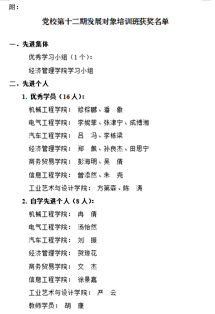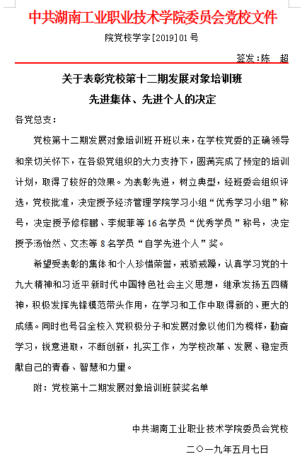 关于表彰党校第十二期发展对象培训班先进集体、先进个人的决定