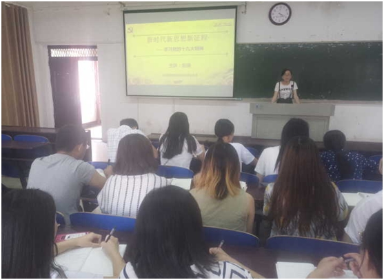本次开班仪式结束后,由学生支部书记彭瑛为培训班学生带来党课《新时代新思想新征程——学习十九大精神》,向大家阐述了中共十九大精神,让大家对十九大精神有了更加全面的了解。