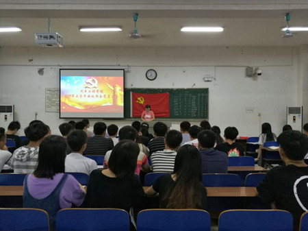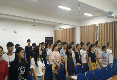 在庄严神圣的国歌声中,大会正式开始。戴莹书记首先报告了支部到会正式党员人数,确认本次支部大会有效,并宣读此次18名发展对象名单。