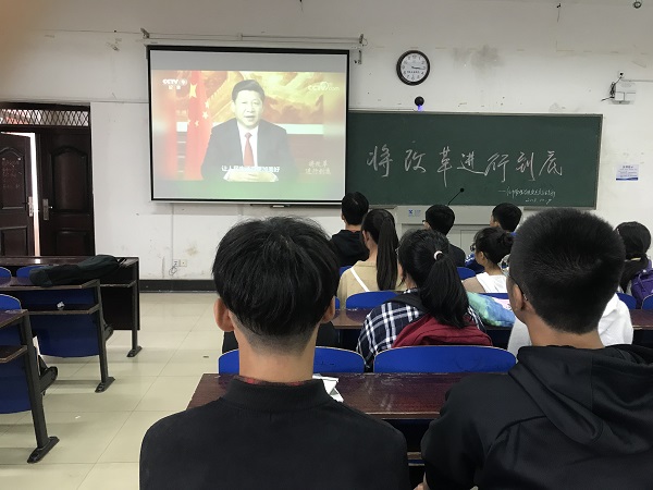 2018年10月9日下午两点,电子pg游戏平台下载经济管理学院党总支学生支部的党员在1304教室观看十集大型政论专题片《将改革进行到底》的第十集《人民的获得感》。