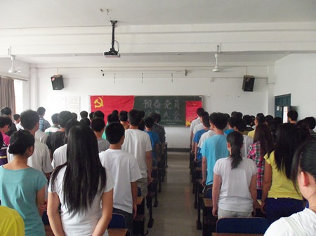 会议在雄壮的国歌声中正式开始。鄢焱老师代表上级党组织宣读了学院党委关于批准吸收本次汽车工程学院五十七名同学转为预备党员的决议,并宣读了五十七名新党员的名单。