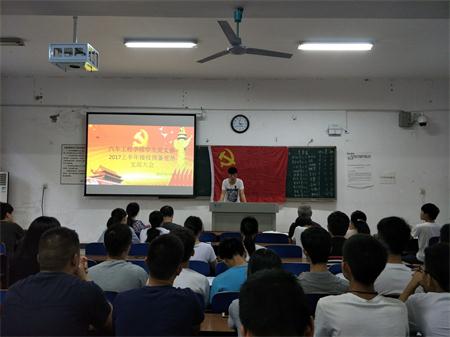 6月30日下午,汽车工程学院学生党支部在第二教学楼104教室召开2017年上半年接收预备党员大会。汽车工程学院党总支书记周理及学生党支部全体党员和本次党员发展对象、入党积极分子代表参加会议。大会由汽车工程学院学生党支部书记程涛主持。