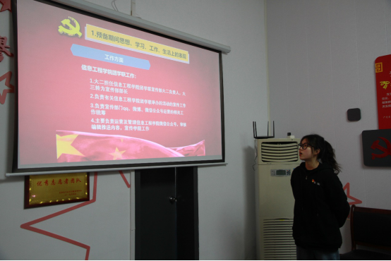 为进一步推进学院党建创办工作,提高党员发展质量,发挥先锋模范带头作用,2021年1月11日上午,信息工程学院学生党支部于1517举行了预备党员PPT陈述测评大会。学生党支部组织委员林欣、学生党支部宣传委员彭茜参加此次会议,会议由学生党支部书记师刘韬主持。