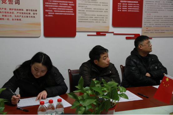 杨晟盛等11名预备党员依次对于预备党员期间的思想、学习、工作和生活方面进行个人展示陈述,分析查找自身存在的不足,并对未来进行展望与规划。刘韬、林欣、彭茜三位老师对预备党员个人陈述展示情况逐一进行打分和点评,评分结果将作为11名预备党员转正的重要依据。