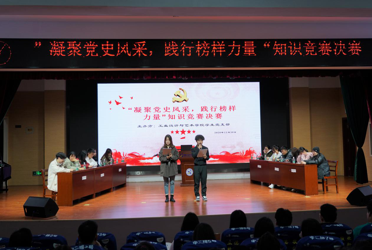 本网讯11月30日,工业设计与艺术学院党总支组织开展的“四史”学习教育——“凝聚党史风采,践行榜样力量”知识竞赛决赛在1102大学生活动中心举行。工业设计与艺术学院党总支副书记郑志凌、学生党支部书记陈丽萍以及辅导员赵芳等老师出席本次比赛并担任评委,师生党员、发展对象、入党积极分子和工业设计与艺术学院分党校第七期初培班全体学员200余人参加本次比赛。