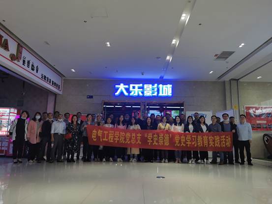 2021年5月25日下午,电气工程学院党总支组织全体教职工党员开展“学史崇德”党史学习教育实践活动——观影《悬崖之上》,接收思想洗礼,锤炼党性修养,凝聚奋进力量。学校副校长、党委委员邱丽芳同志以普通的共产党员身份参加本次活动。