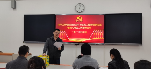 (电子信息工程教师党支部讯)根据学校基层党组织选举工作安排,电气工程学院电子信息工程教师党支部于2023年4月4日在力行楼9205召开了支部党员大会,选举产生党支部新一届委员会委员,会议由唐健豪同志主持。