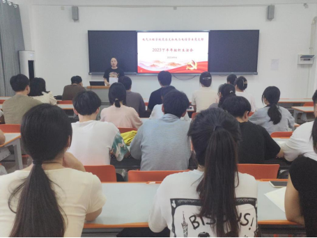 随后廖敏老师代表支部汇报了支部上半年工作总结及后期工作安排,在这一年的工作中,我们始终坚持党的方针政策,坚守初心使命,取得了一系列的成绩和进展。对于下半年的分党校培训工作,加大宣传力度,让更多学生了解党的基本知识,引导学生积极向党组织靠拢。