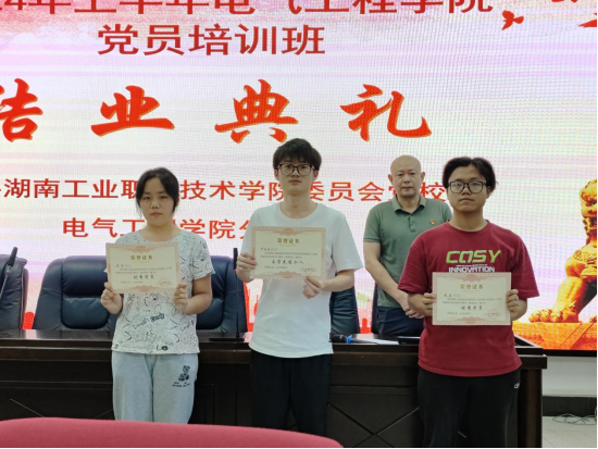2024年6月25号下午16时30分,电气工程学院分党校2024上半年党员培训班结业典礼在力行楼9319举行。学院党总支副书记苏文凭,学院党总支党务办主任、分党校培训班班主任汪琳,电气与机器人学生党支部书记王斯锐,以及电气工程学院全体辅导员老师们出席本次结业典礼,全体参培学员参加。典礼由苏文凭书记主持。