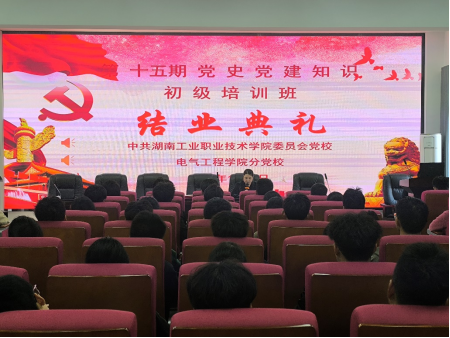 2024年11月6日中午12时15分,电气工程学院分党校第十五期党史党建知识初级培训班结业典礼在力行楼9319教室举行。学院党务办主任汪琳,机电与电信学生党支部书记周娟,电气与机器人学生党支部书记王斯锐,学院院团总支书记刘骏鹏出席本次结业典礼,全体参培学员参加。