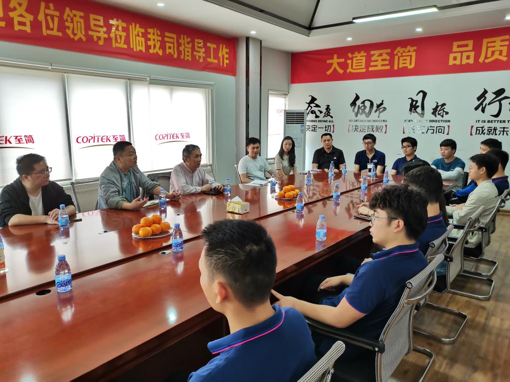 2021年5月28日上午,电气工程学院院长李德尧、副院长张宇驰、辅导员陈伟林老师和刘喜旺老师一行4人组成巡查小组赴湖南至简复印件再制造有限公司开展毕业生顶岗实习巡查,并就推动学生实习就业、实习实训基地建设以及教师企业顶岗实践等校企合作事宜分别与湖南至简复印件再制造有限公司常务副总蔡梧州、生产部经理董湘丽和人事部负责人周青等领导进行了深入探讨和交流。