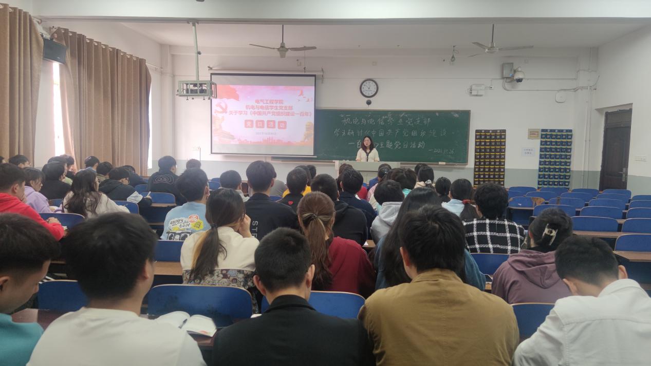 为庆祝中国共产党建党一百周年,激发党员光荣感、使命感, 10月26日下午,电气工程学院机电与电信学生党支部组织全体党员在1212教室开展学习《中国共产党组织建设一百年》主题党日活动。活动由支部书记周敏主持,全体党员参加。
