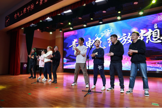 晚会伊始,伴随着活泼动感的音乐,一段激情洋溢的团学开场舞拉开了晚会的序幕,台上的他们散发着青春活力,优美的动作尽显魅力,燃爆全场。接着,动感的音乐响起,台上的热舞处处散发着青春活力。起点音协的玖拾分乐队带来了《披星戴月的想你》,歌声低沉有力,他们用歌声娓娓道来一份含蓄的感情。《一路生花》,屏幕上投放的一张张医护人员抗疫图片,婉转动人的歌声尽是歌颂过去艰难的时刻。
