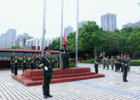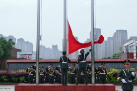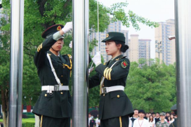 7:10升旗仪式正式开始,伴随着《义勇军进行曲》,国旗护卫队队员们踏着整齐的步伐走向升旗台。接着在所有学生的注视下,五星红旗缓缓升至顶端,飘扬在工院的上空。