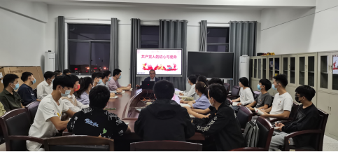 2022年10月25日18时30分。电气工程学院2022年下半年党员培训班全体学员在力行楼党员活动室参加由电气工程学院李德尧院长主讲的党课--共产党人的初心与使命。