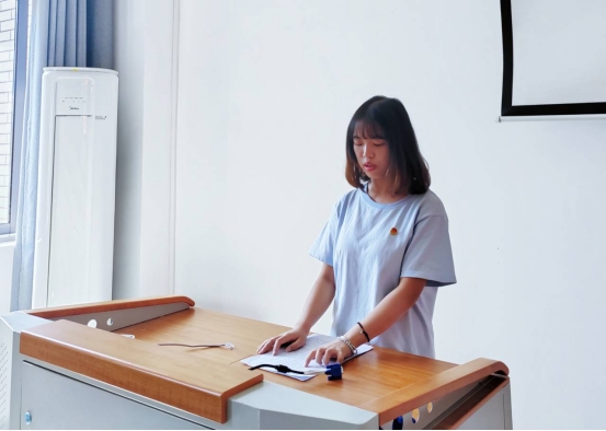 学生会轮值主席石朝霞上台致辞,她对那些为我院团总支的发展默默奉献的同学表示感谢。同时对下一届的同学做作出了要求:身为团学干部,要端正态度,践行自己的承诺,发挥主观能动性,服务好老师、同学。同时,也要切实解决问题,调节好老师与同学之间的关系。