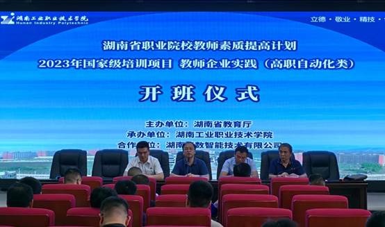 由湖南省教育厅主办,电子pg游戏平台下载、湖南华数智能技术有限公司承办的2023年高职自动化类教师企业实践国家级培训项目于7月16日在电子pg游戏平台下载正式开班。电子pg游戏平台下载副校长李强、电气工程学院院长李德尧、湖南华数智能技术有限公司副总经理邹飞及来自全国30所不同高职院校的骨干教师参加了开班仪式。