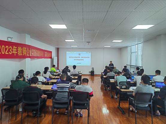 8月18日,2023年教师企业实践(高职自动化类)国家级培训班在湖南华数智能技术有限公司开展结业考核工作,电气工程学院院长李德尧,副院长何其文,湖南华数智能技术有限公司谭斯妤等担任考核评委,参与培训的30名国培学员参加了考核。