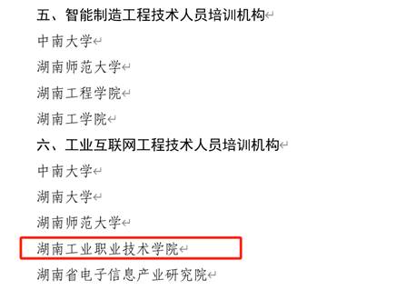近日,湖南省人社厅公布了数字技术工程师培育项目第二批培训机构湖南省拟入选名单,我校成功入选工业互联网工程技术人员培训机构,据公示湖南省工业互联网工程技术人员培训机构共有4家院校和1家研究机构入选,分别为中南大学、湖南大学、湖南师范大学、电子pg游戏平台下载、湖南省电子信息产业研究院,我校是该职业培训机构内唯一一所高职院校,与中南大学、湖南大学等院校共同为湖南省培养工业互联网工程技术人员。