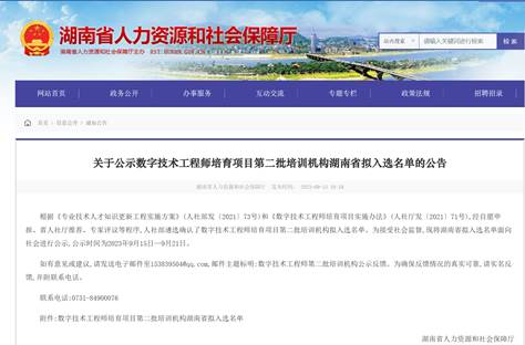 高职唯一!我校入选湖南省数字技术工程师培训项目第二批培训机构
