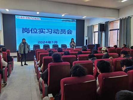 2024年1月3日下午,物联网应用技术专业2021级全体学生,在力行楼9319召开岗位实习动员大会。物联网专业教研室肖潇老师主持会议,电气工程学院党总支苏文凭副书记、辅导员黄湘超老师、辅导员李娅老师等出席会议。