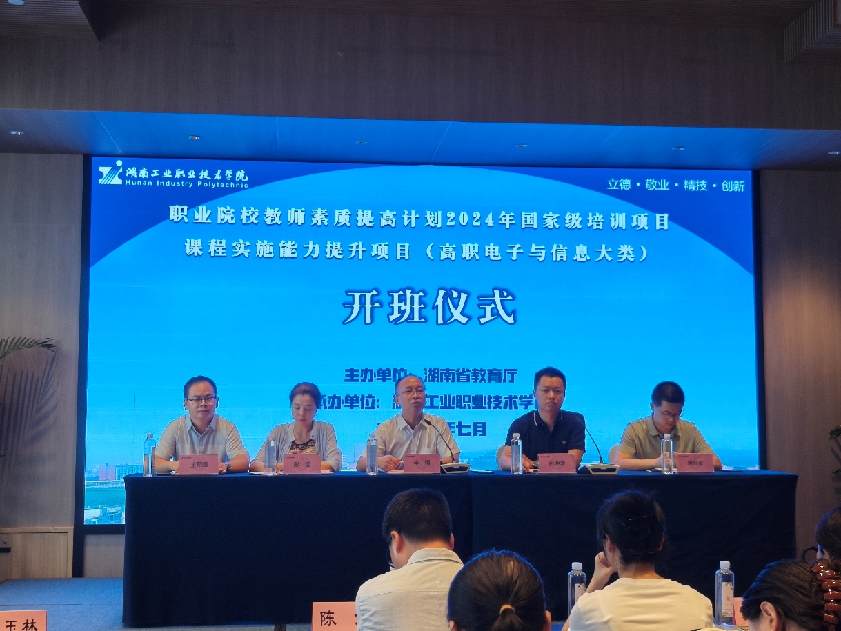 近日,由湖南省教育厅主办、电子pg游戏平台下载承办的职业院校教师素质提高计划2024年国家级项目——高职电子与信息大类课程实施能力提升项目在我校顺利开班。我校副校长李强、电气工程学院副院长彭湘华、副院长彭雯出席了开班仪式。来自全国30所高职院校的40名骨干教师参加了此次国培班。