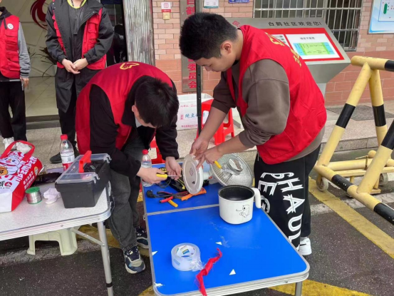 活动开展前,团总支书记刘骏鹏老师对所有志愿者提出工作要求:一、每位志愿者都应该拿出最好的精神面貌,全心全意为人民服务,为群众办实事;二、要把崇高理想信念和道德品质追求转化为具体行动;三、作为新时代青年,要用实事求是,用行动传承和践行雷锋精神,将志愿服务活动做细做实。在场志愿者们纷纷表示自己会认真对待。随后志愿者们带上工具有序前往白鹤社区,开始今日的义务维修活动。